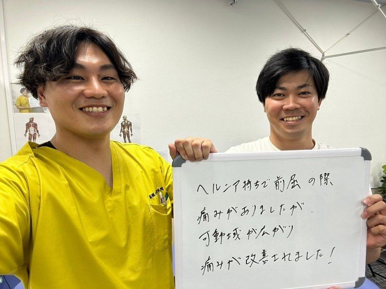 「ヘルニアからの腰痛が改善され、可動域も広がりました!!」