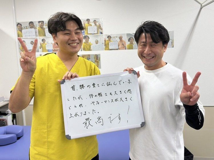 「首・腰の重さに悩んでいましたが施術でパフォーマンスが大きく上がりました!!最高です!!」