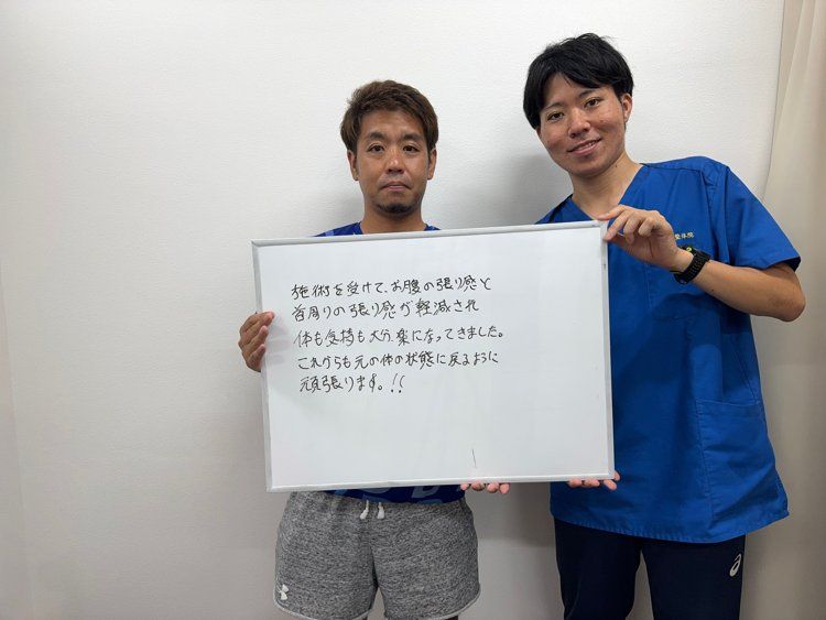 Q、あなたと同じような症状でお悩みの皆様へメッセージがありましたら教えてください。 A、施術と合わせて家でできるセルフケアも指導して貰えるので良かったです