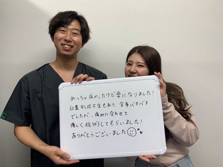 臼蓋形成不全もあり全身バキバキでしたが、優しく施術してもらい楽になりました!